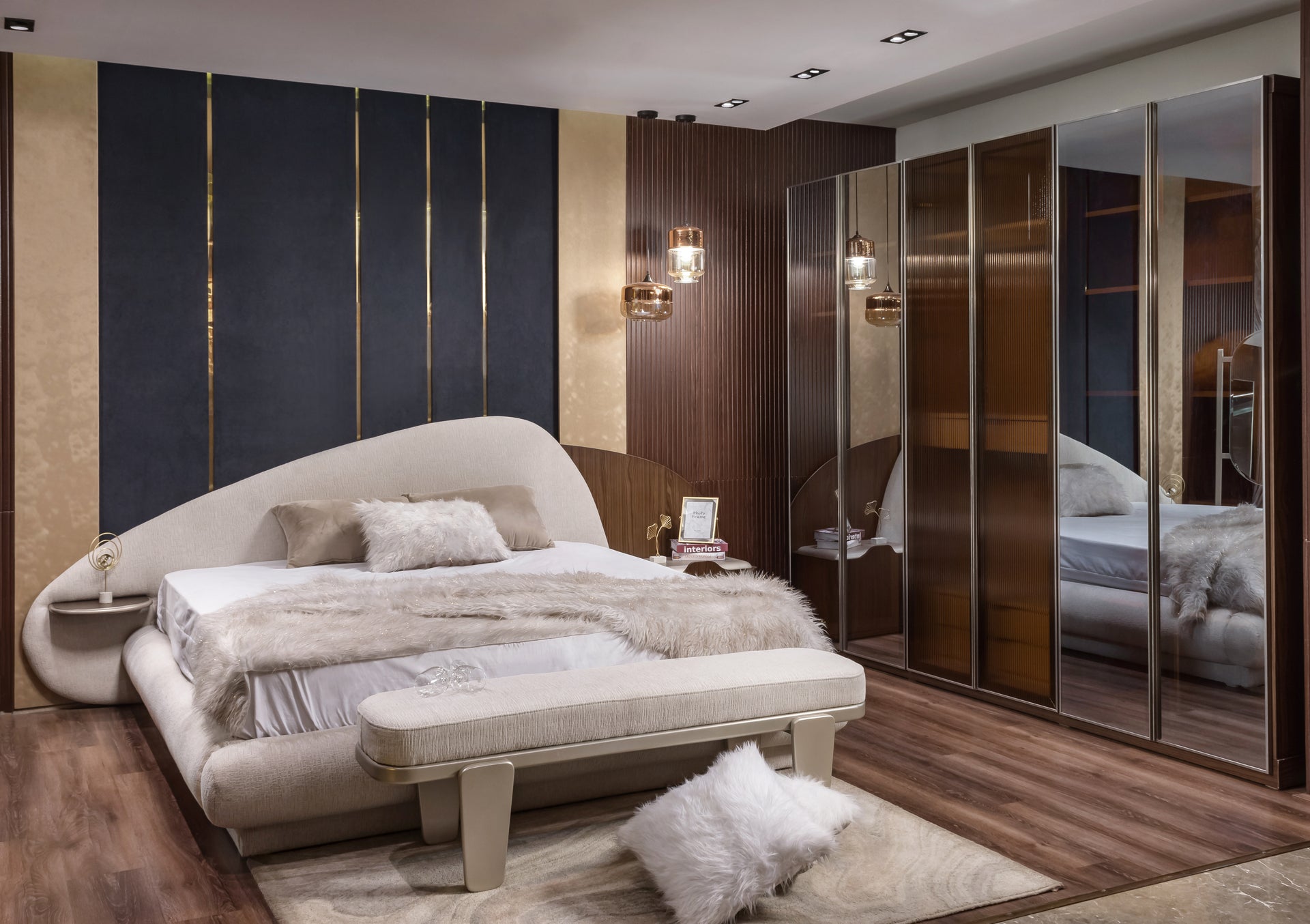 سرير+2كمود+دولاب+تسريحة +بف+بانكت+ مرايه طوله