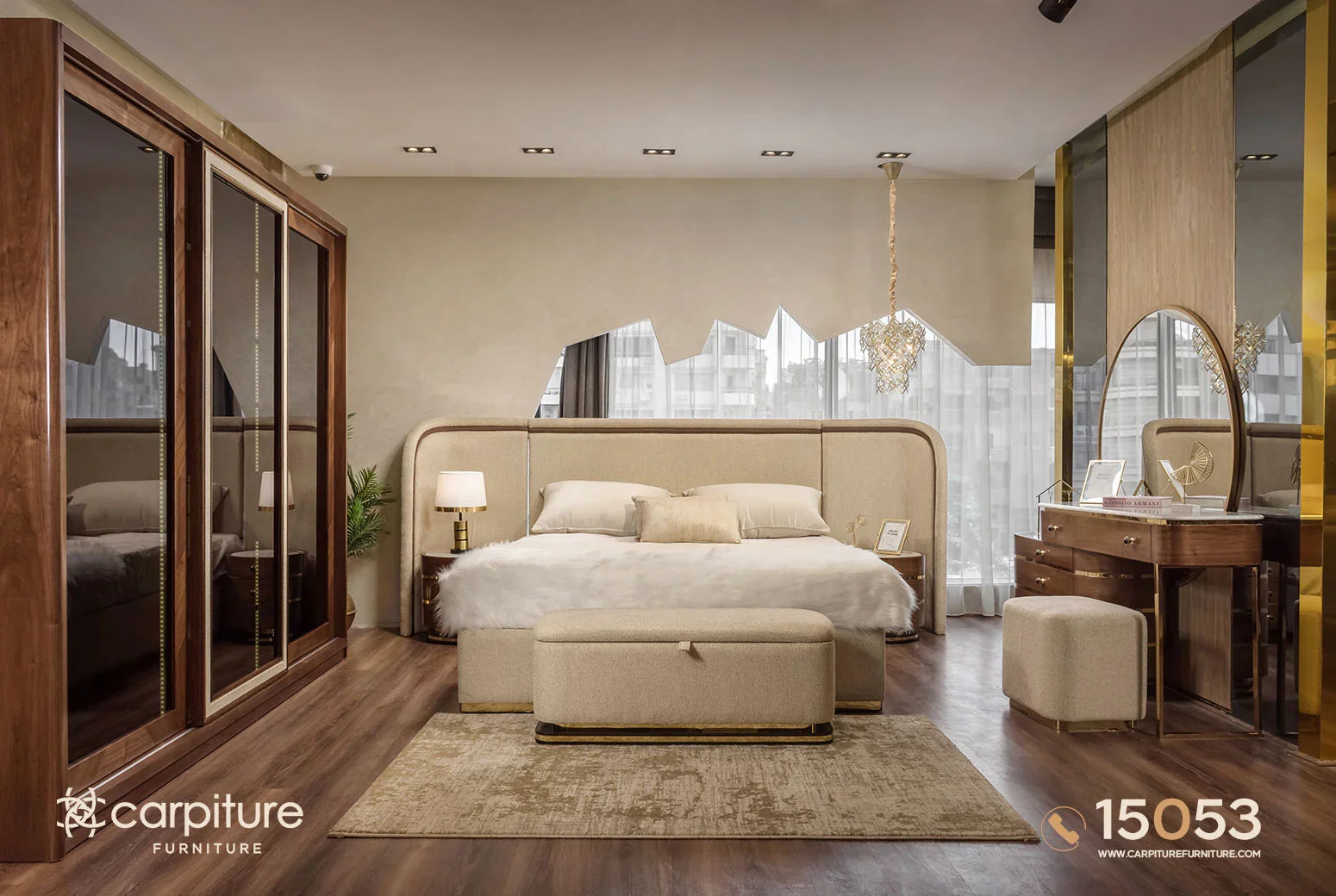 سرير+دولاب+2كمود+تسريحة بالمرايا+بانكت+بف