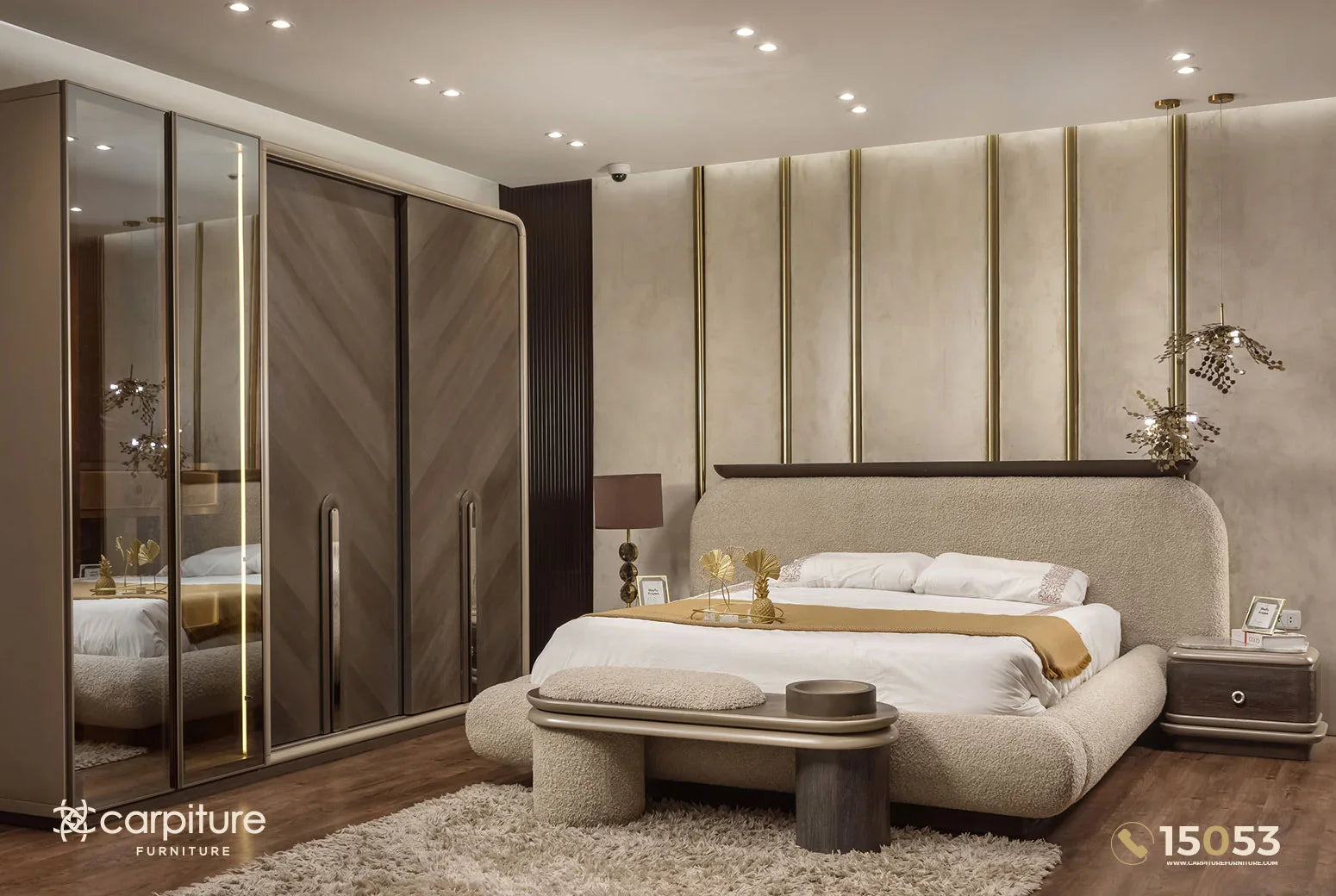 دولاب + سرير + 2كمود + تسريحة بالمرايا + بف + بانكت