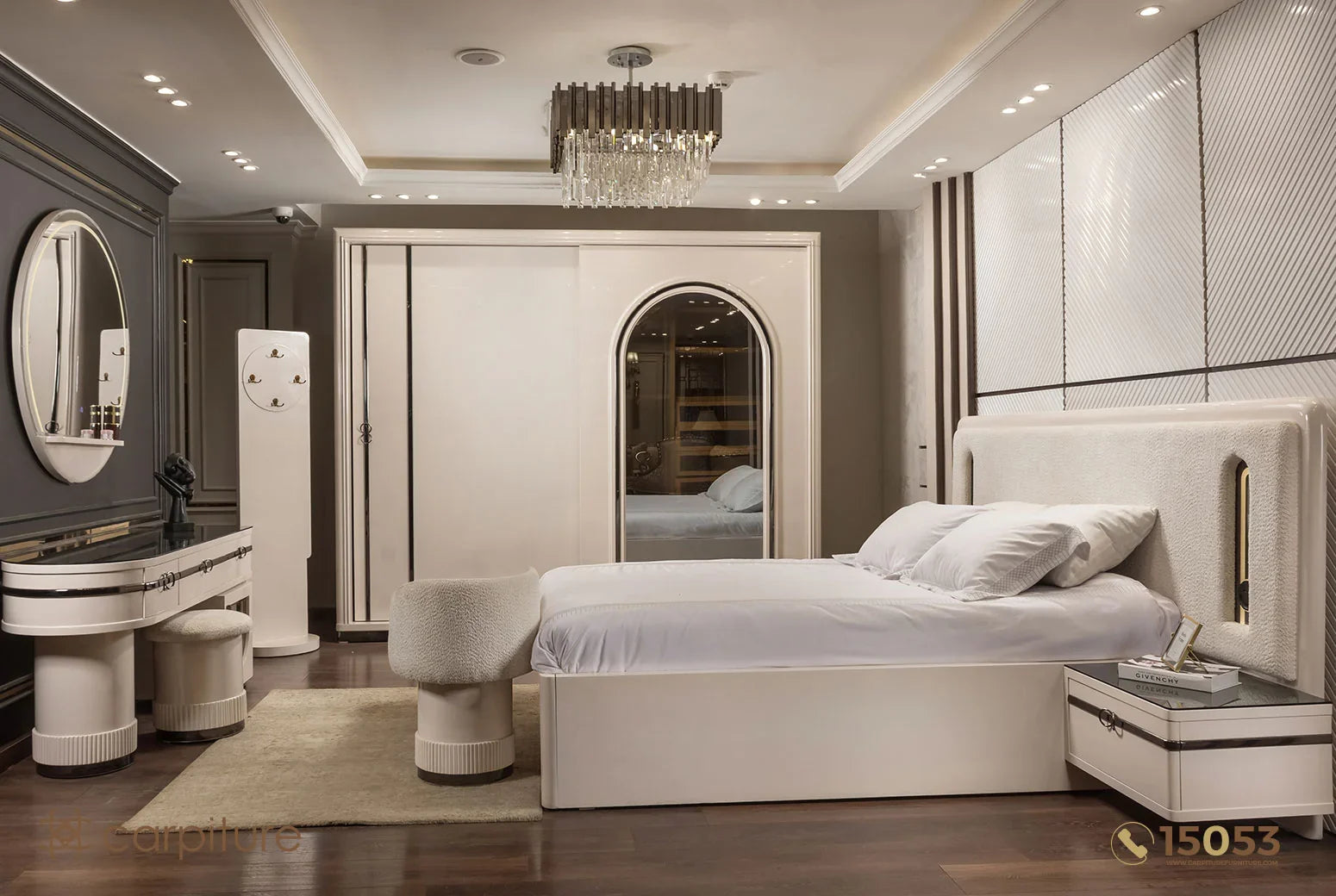 سرير+دولاب+تسريحة+2كمود+بف+بانكت+شماعه