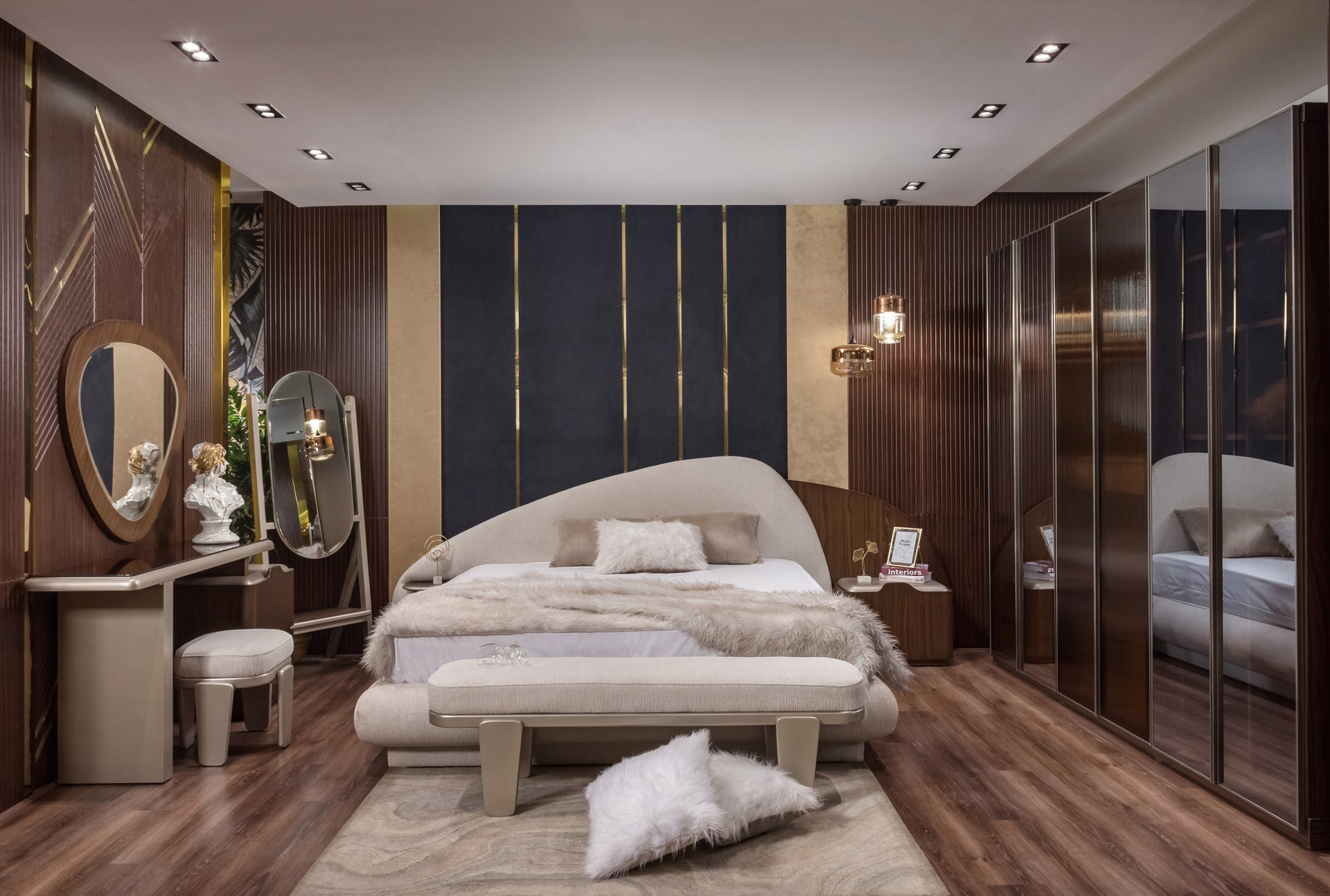 سرير+2كمود+دولاب+تسريحة +بف+بانكت+ مرايه طوله