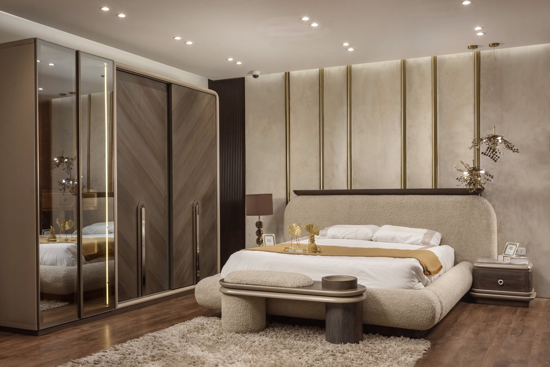دولاب +سرير+2كومود+تسريحه بالمرايا+بف+بانكت