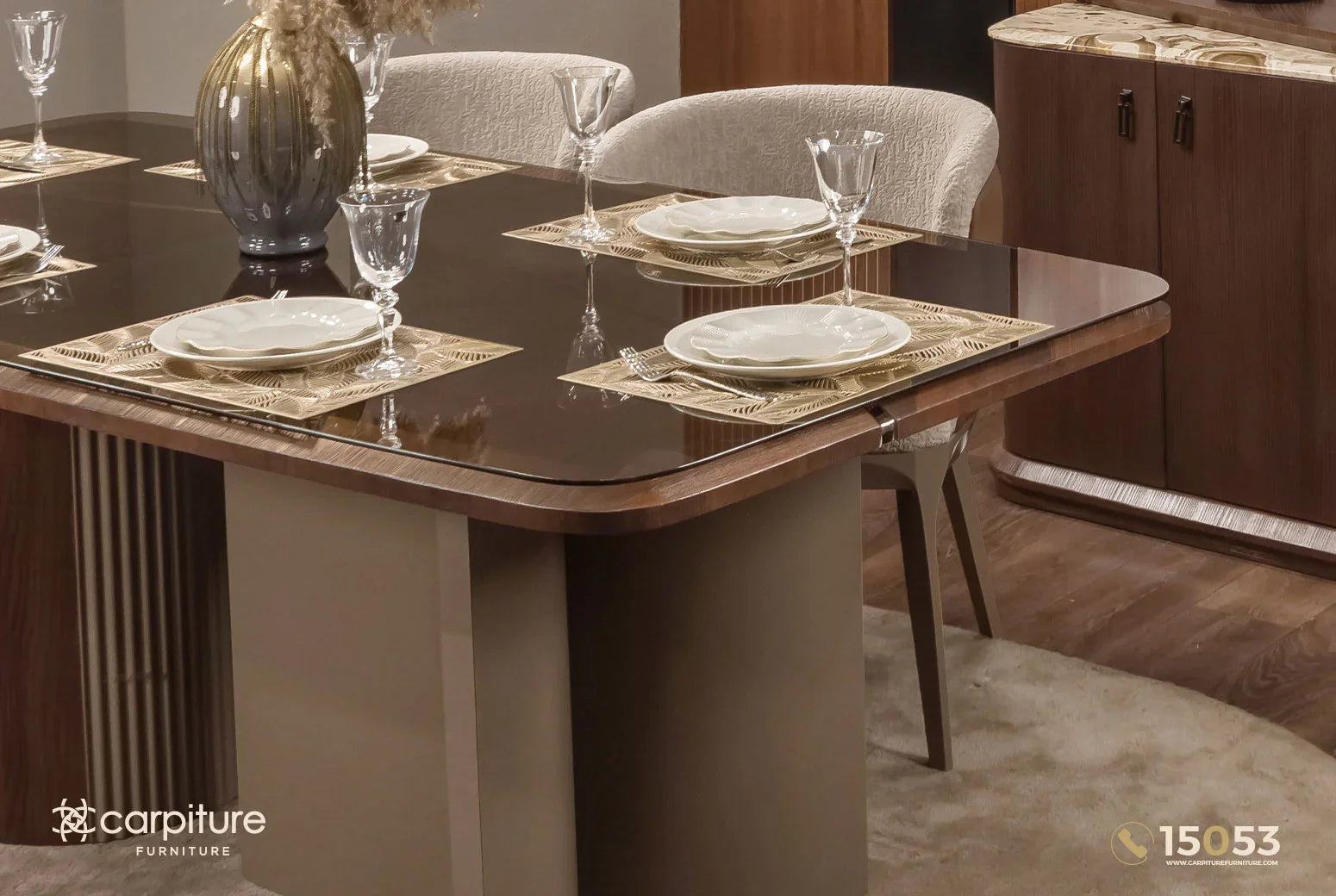 ترابيزة + 6 كراسي + بوفية بالمرايا