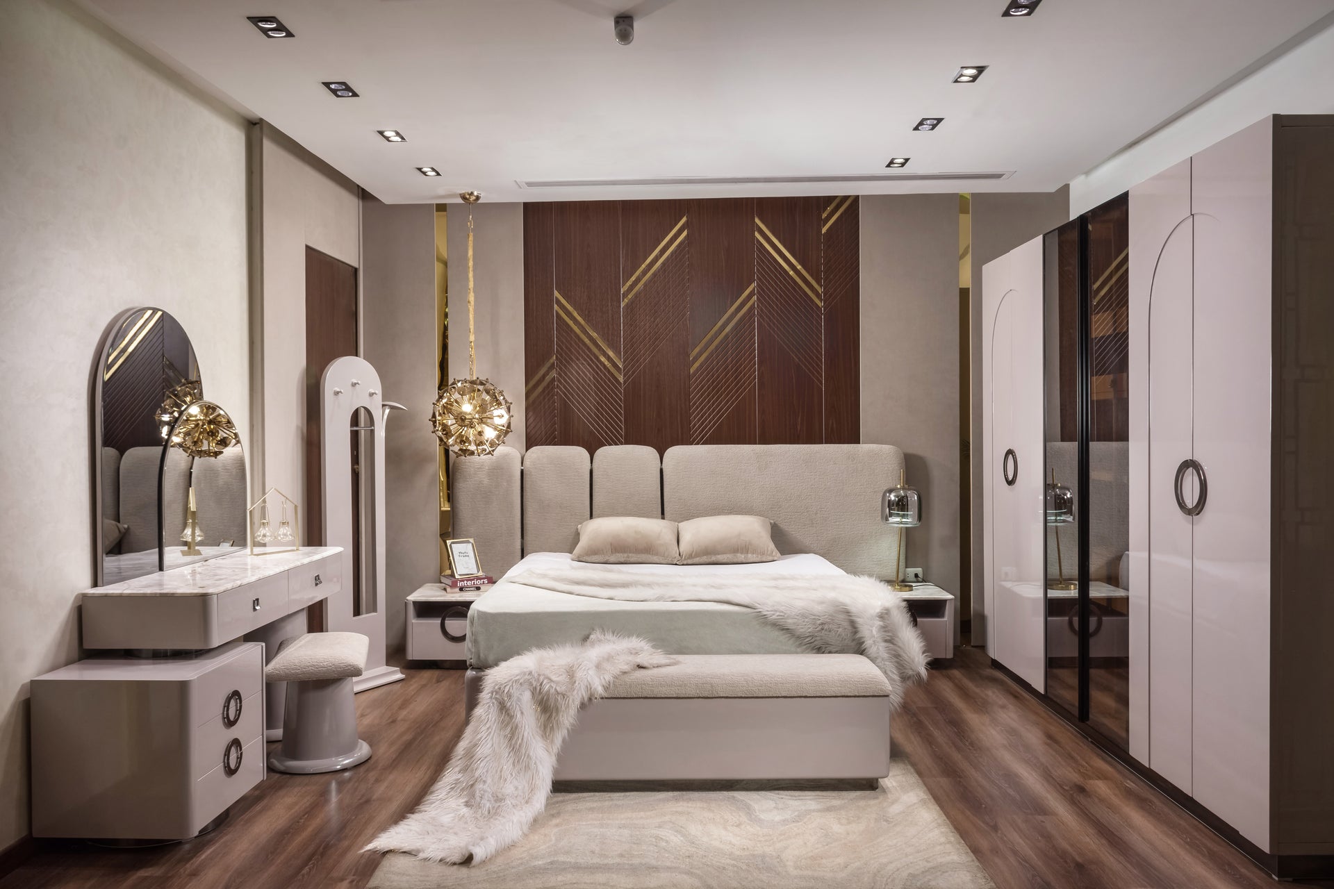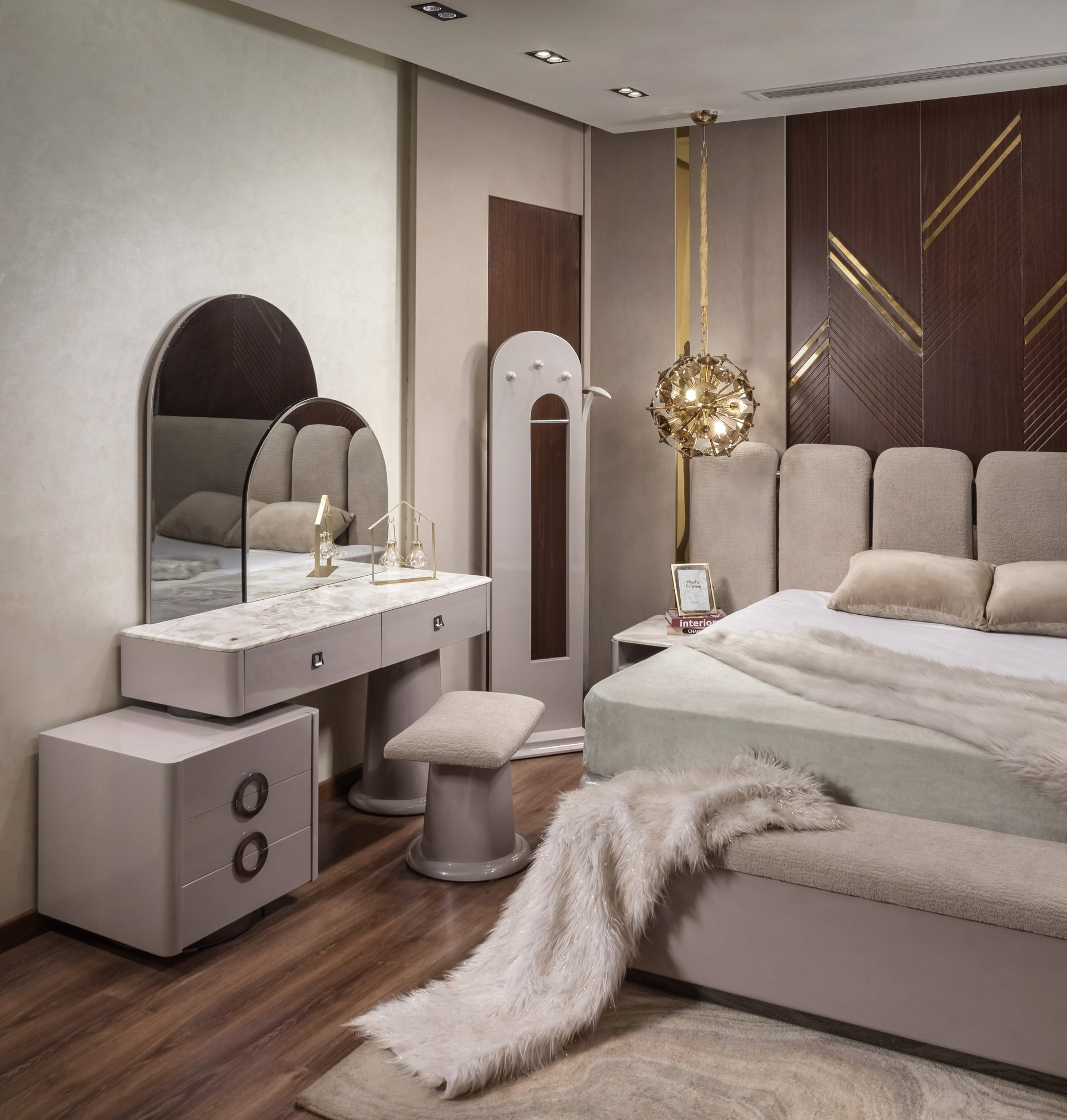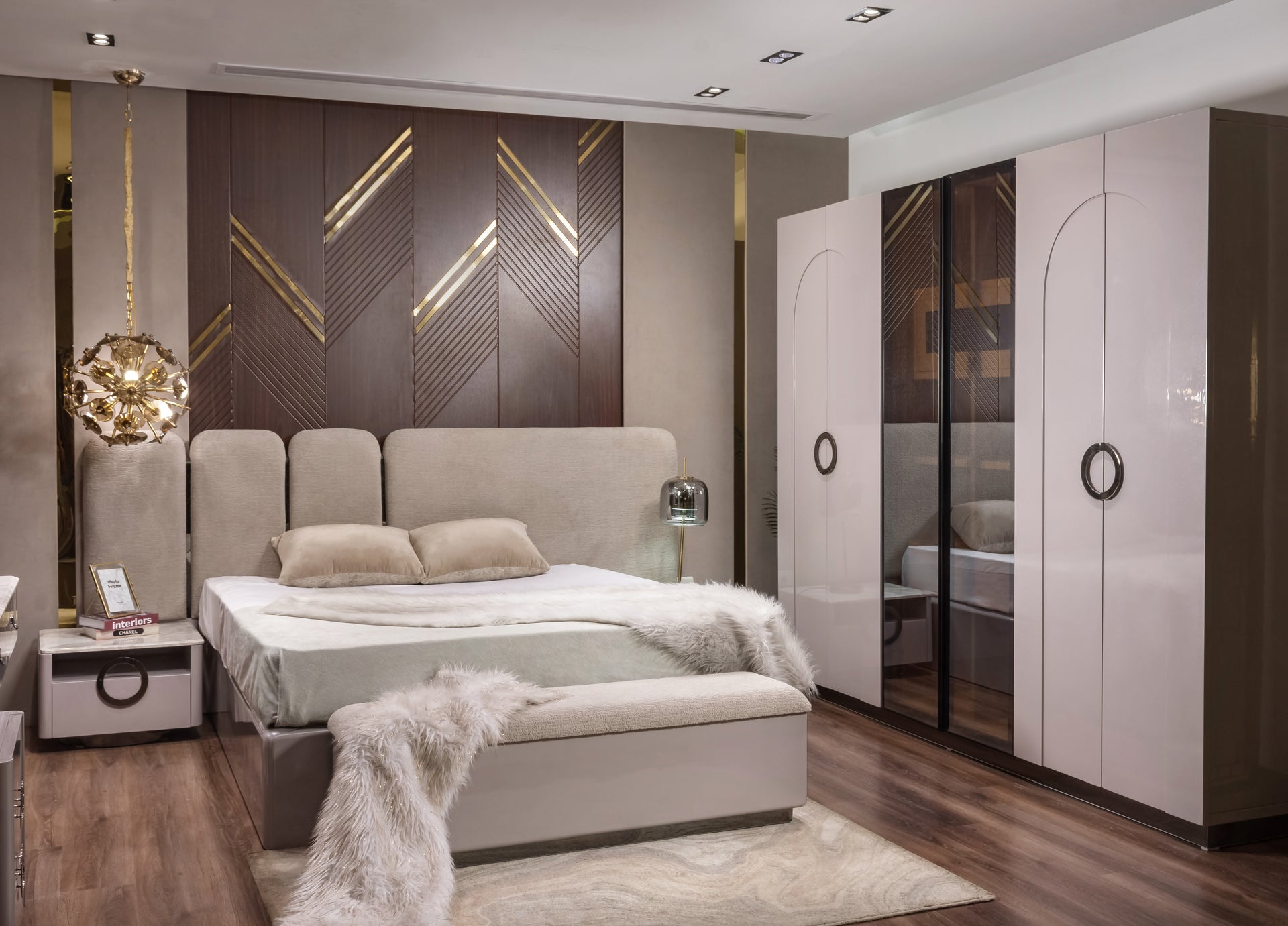 سرير+2كمود+دولاب+تسريحة +بف+بانكت