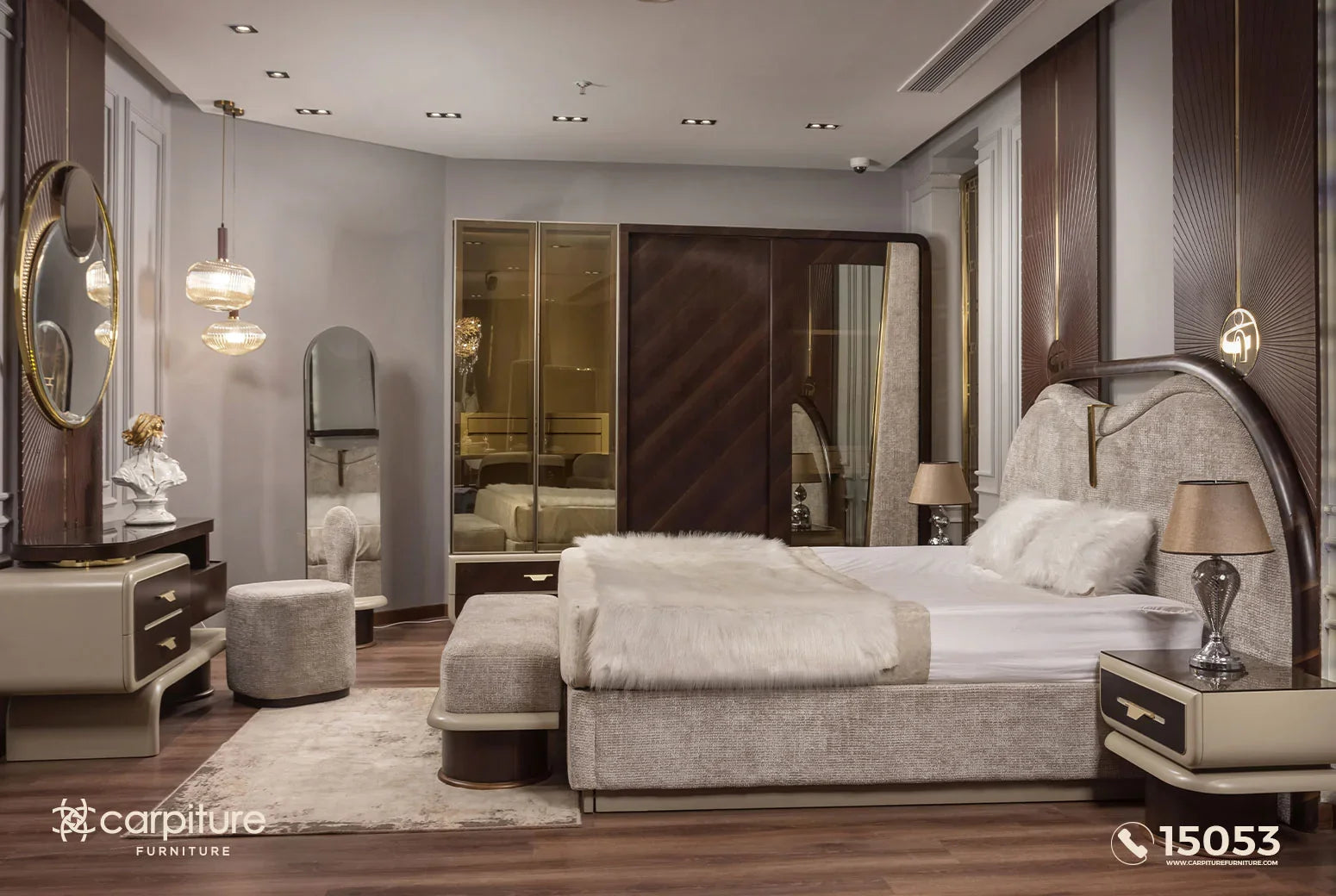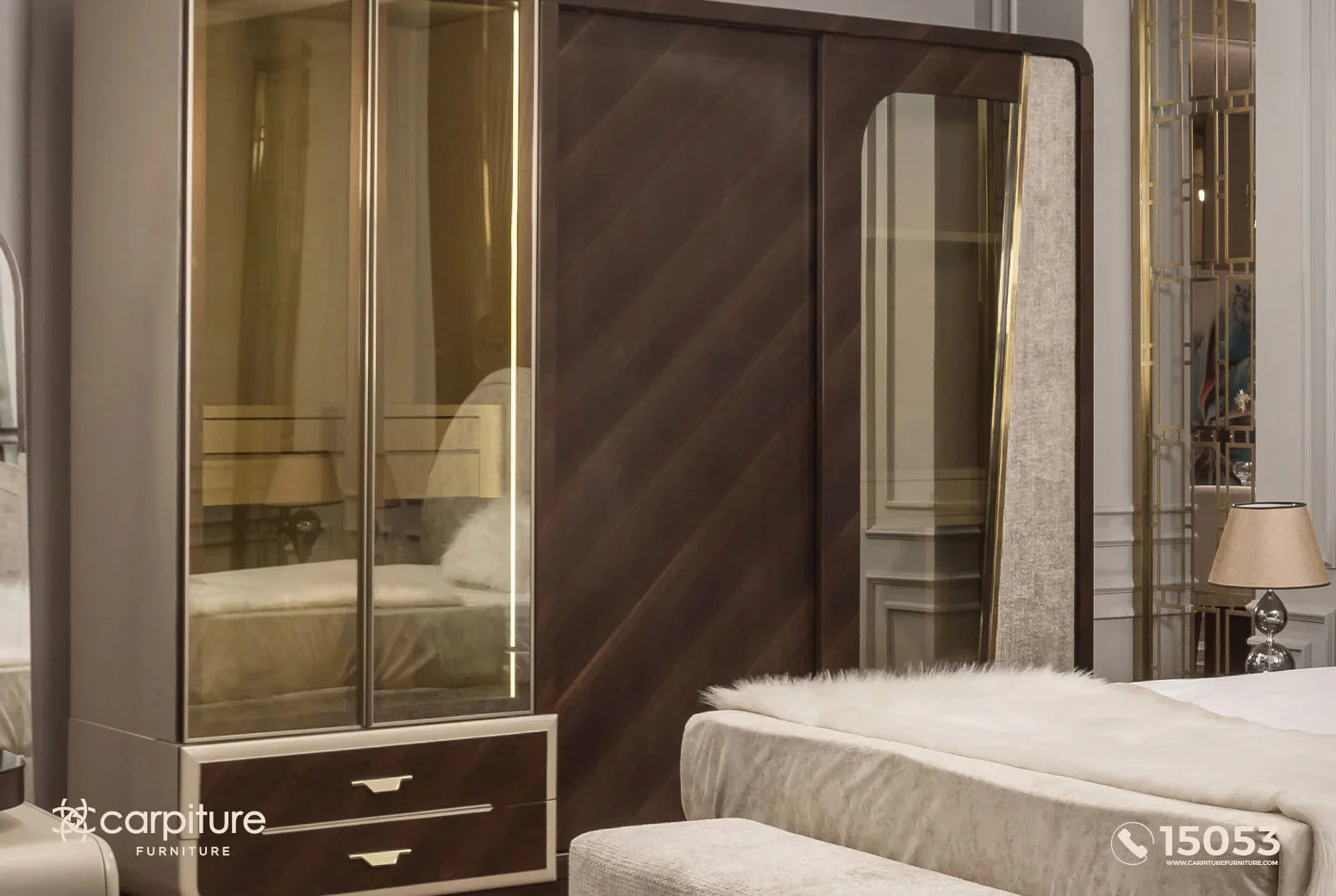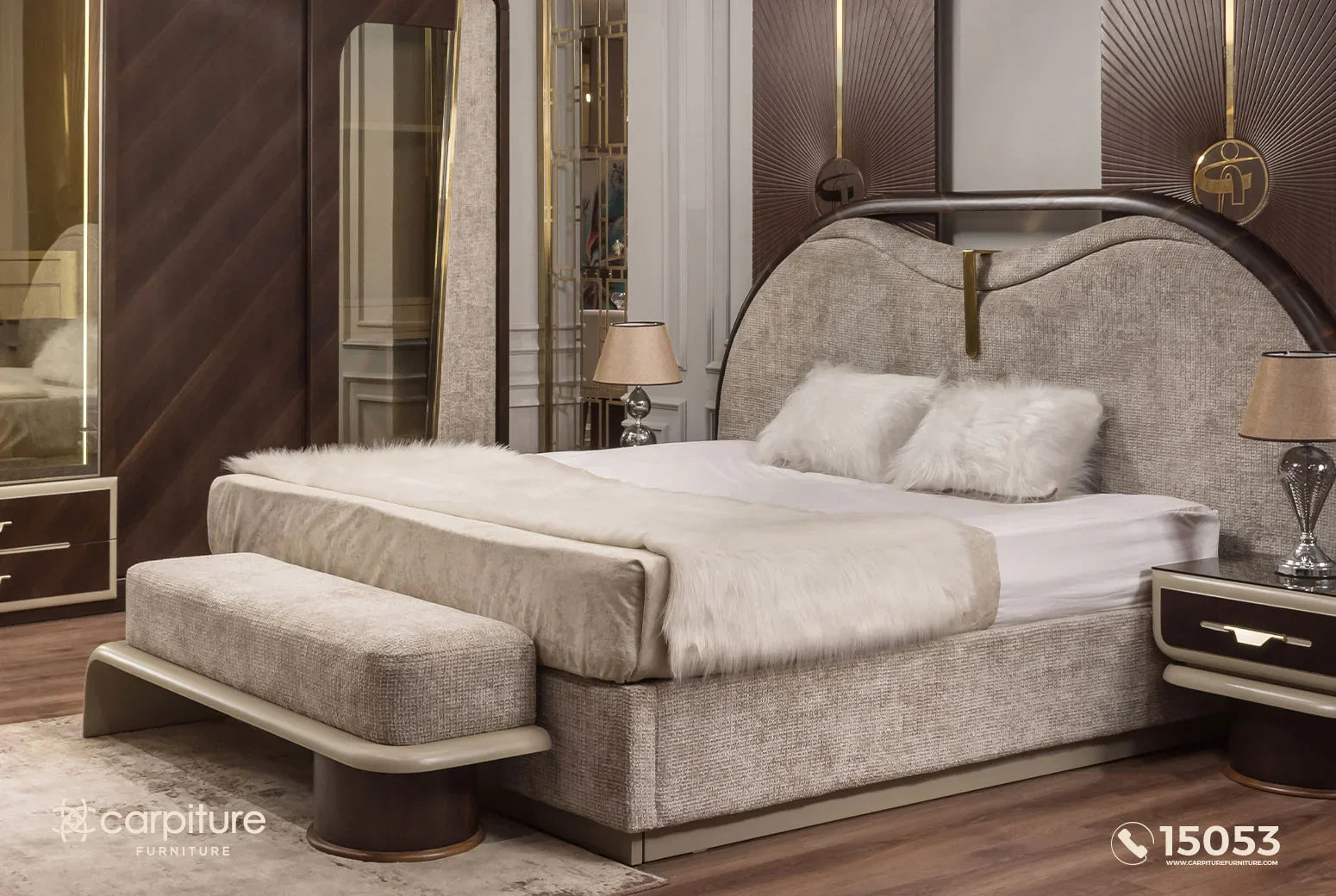 دولاب + سرير + 2كمود + تسريحة بالمرايا + بف + بانكت