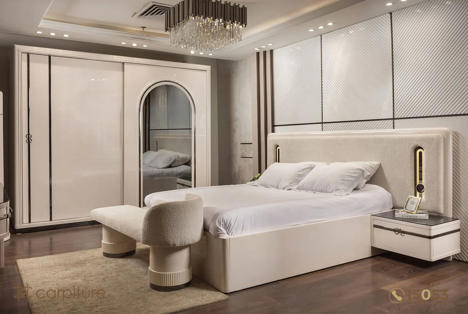 سرير+دولاب+تسريحة+2كمود+بف+بانكت+شماعه