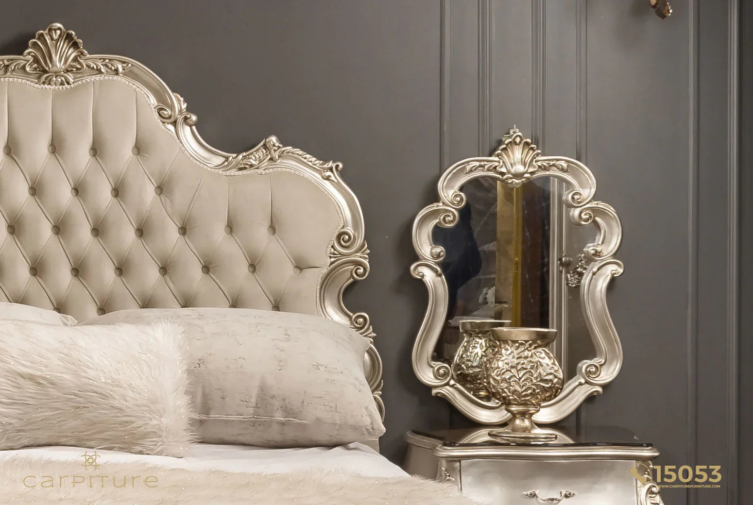 Bed + 2 nightstands + wardrobe + dressing table + pouf + bench + hanger